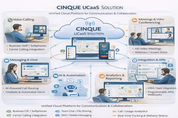 The Cinque Solution – Modern e-PBX Cinque is a software-defined, telecom grade unified calling platform that replaces traditional PBX with secure voice, video, messaging, and data on a single screen.